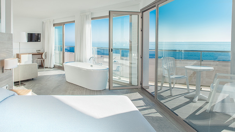 En este complejo frente al Mediterráneo podrás descansar al sol, disfrutar de una cuidada gastronomía con vistas al mar, realizar tu clase más divertida de aqua-gym, relajarte en su exclusivo spa, pasar animadas horas en el chiringuito de la playa o vivir la experiencia más romántica en sus habitaciones con bañera y vistas al mar. Uno de los lugares más especiales de nuestro hotel es su área de piscinas, donde te esperan relajantes terrazas, dos piscinas, la zona de hidromasaje con camas de burbujas y solárium con camas balinesas, además de nuestro animado pool-bar y, todo, frente al mar. Nuestro hotel, Hotel RH Bayren en la gran playa de Gandía hará que, al salir del hotel, en tan sólo unos pasos tengas los pies sobre la arena fina y dorada que caracteriza a esta playa. Antes de llegar a rozar el mar te espera uno de nuestros lugares más playeros, el Chiringuito RH Beach, para que el espíritu veraniego esté presente en todo momento. En él, podrás disfrutar de platos típicos de nuestra tierra como: arroces, fideuá de Gandía y también refrescantes ensaladas, pescaditos de lonja, calamares, chopitos... etc., además de los más variados cócteles y las mejores cervezas y vinos. Si quieres relajarte al máximo, sólo tienes que pasarte por nuestro completo y exclusivo spa, donde te espera una piscina de flotación, sauna finlandesa, baño de vapor, ducha escocesa, rain shower, piscina climatizada, camas de hidromasaje, jacuzzi y un área de relax con hamacas. Para completar tu experiencia de nuestro hotel con spa en Gandía, contamos con una amplia carta de tratamientos de belleza y masajes y un equipo altamente cualificado para asesorarte de manera profesional. Junto a nuestro spa, aquellos que quieran seguir con sus rutinas deportivas cuentan con un completo gimnasio además de las clases programadas por los monitores deportivos RH. En las noches de verano la terraza, situada en la azotea, “Moon Lounge” es el lugar de encuentro para los amantes de las vistas únicas, los ambientes relajados, la buena música y los mejores cócteles.